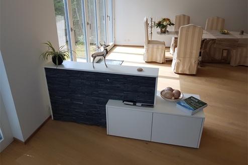 Referenzobjekt: Fernsehmöbel mit Natursteinwand