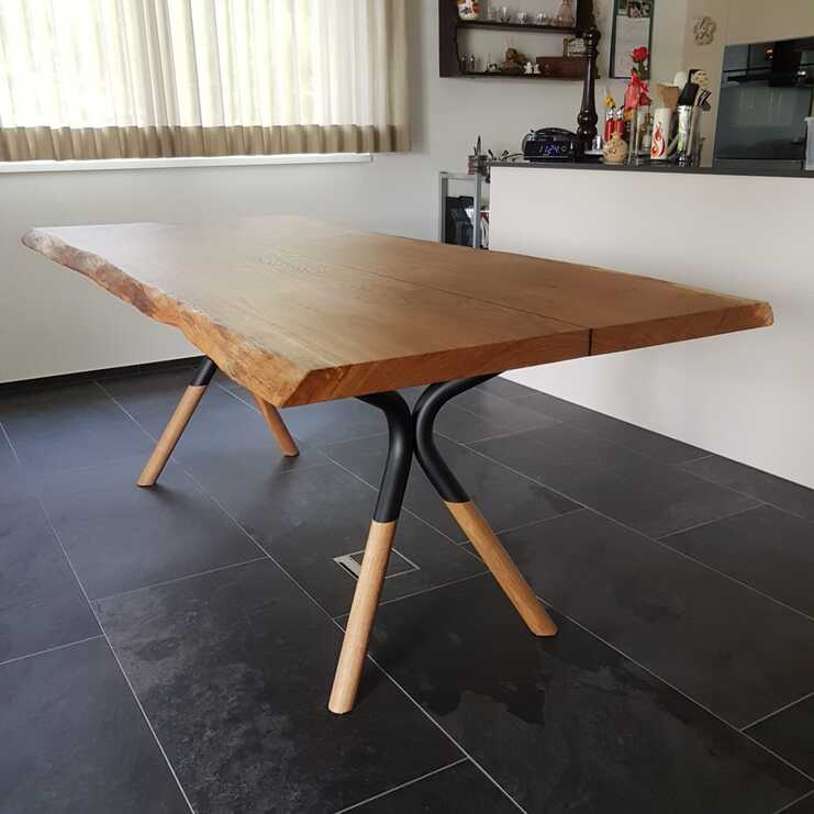 Zusammen mit den schlanken Metallbeinen entsteht ein nach Wunsch gestalteter Tisch, der viel Freude bereitet.